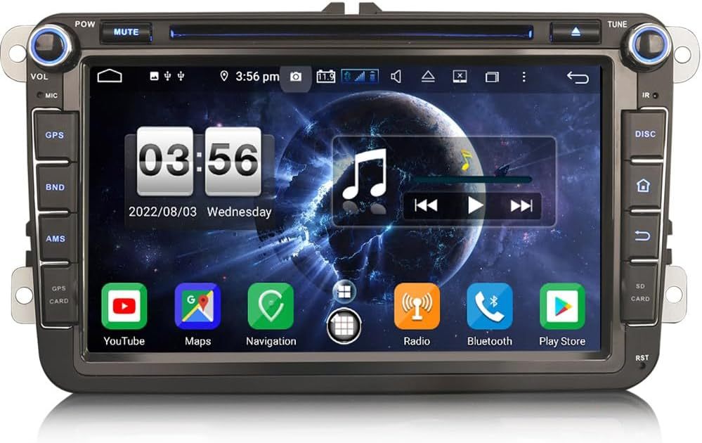 Erisin 8-Core 4GB+64GB Android 14 Car Radio Bluetooth GPS Navigator for Volkswagen Golf 5/6 Passat Polo Tiguan Touran Caddy T5 Sharan Seat Skoda CarPlay Android Auto Dab+ WiFi DSP USB FM RDS CD DVD